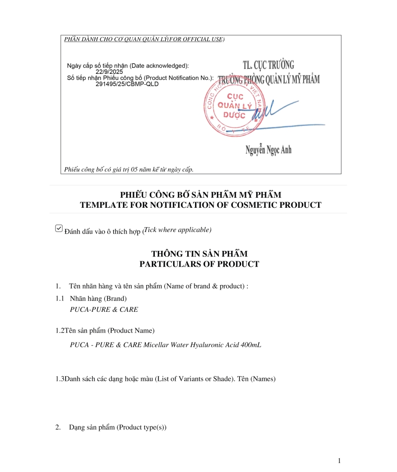 Pure & Care Hyaluronic Acid Micellar Water được thiết kế theo định hướng: